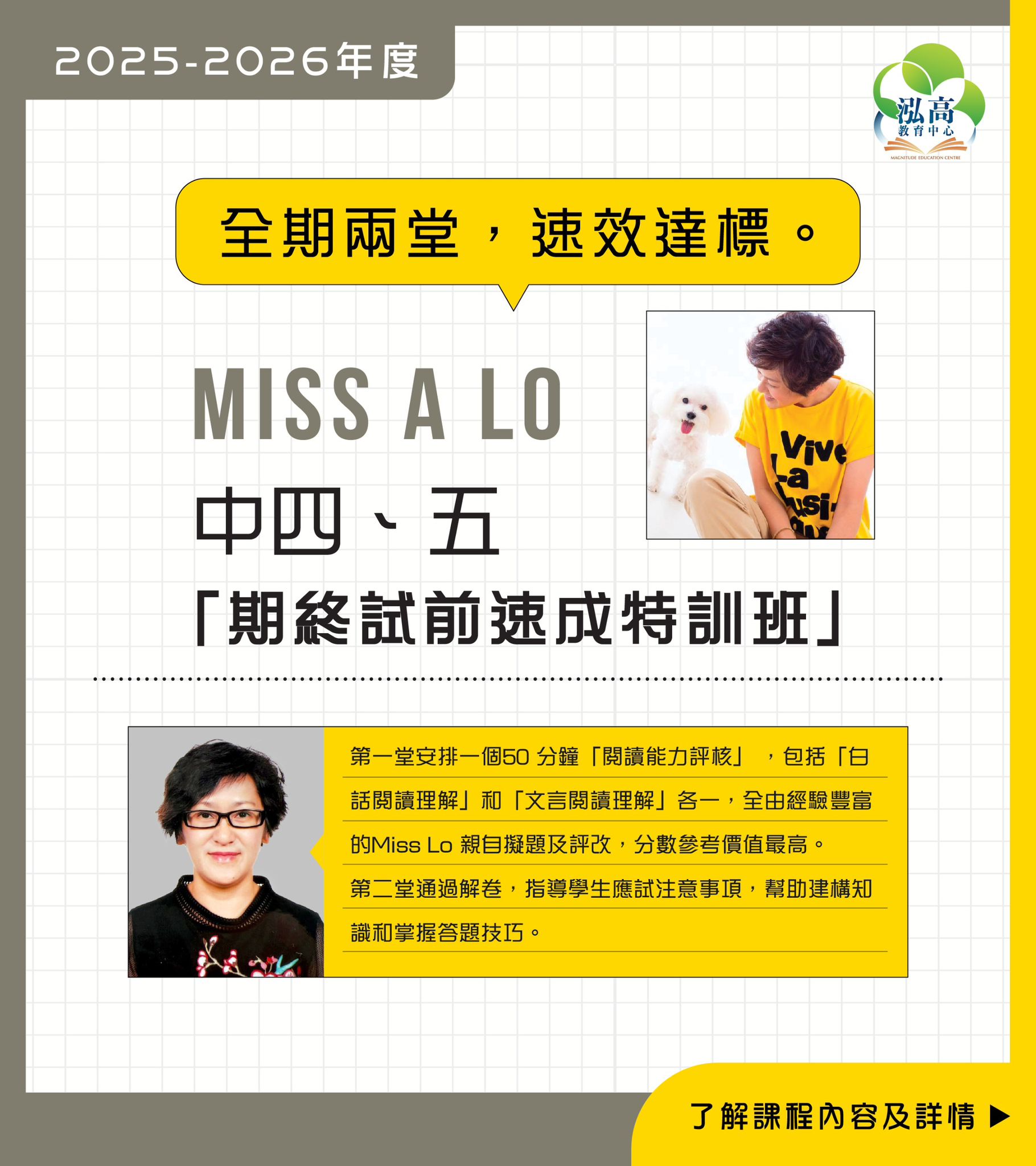 Miss A. Lo 中四至中五中文科「期終試前速成特訓班 」 (星期六) – 天后